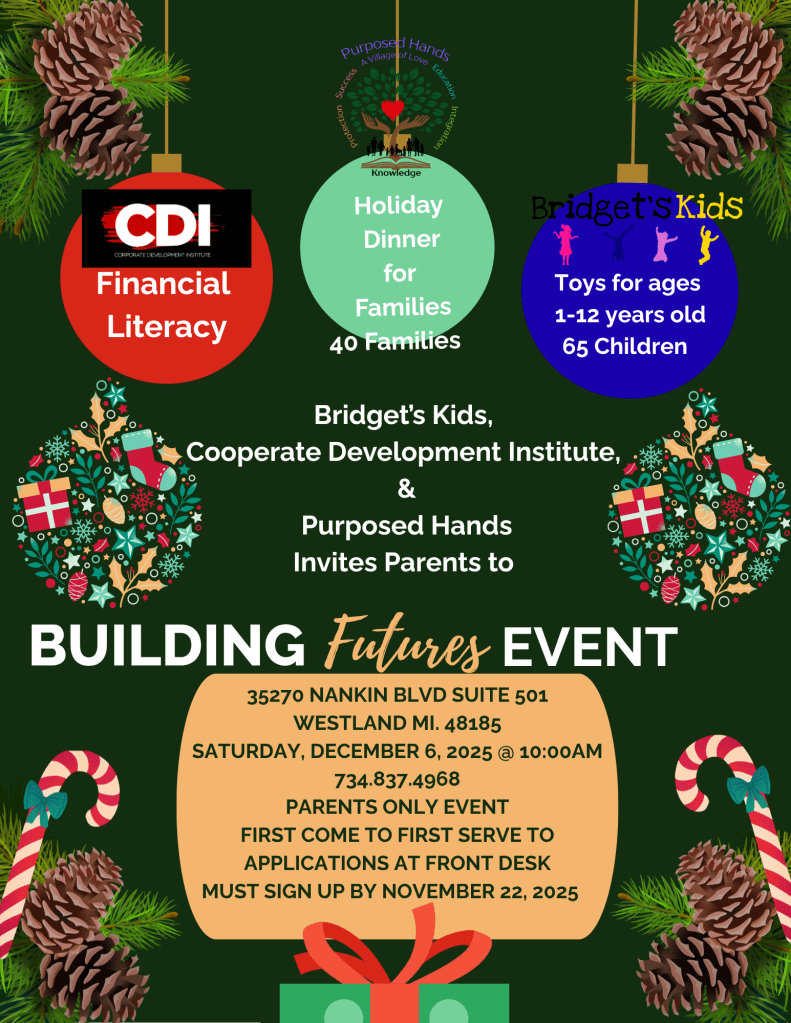 In 2025, Purposed Hands served 90% of families enrolled at Kids Purpose Learning Center during the Christmas season, providing food, toys, and financial education to 50 parents and 83 children. During Thanksgiving, 50% of KPLC families were supported with holiday meals, reaching 30 families and 45 children. With a cost model of $50 per family of four, Purposed Hands aims to expand services to 500 families during major holidays and 200 or more families monthly, ensuring consistent, dignified support for families in need.